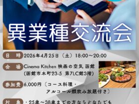 【全道各地青年会議所事業PR_VOL.10】 『異業種交流会 ~地域でつながる、次の一歩~』 函館のまちで、新たな出会いとつながりを生み出す異業種交流会が開催されます。 さまざまな業種・立場… -
