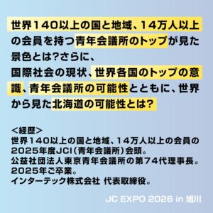 4月4日(土曜日)開催のJC EXPO 2026 in 旭川~みんなでつくる北海道の未来~には