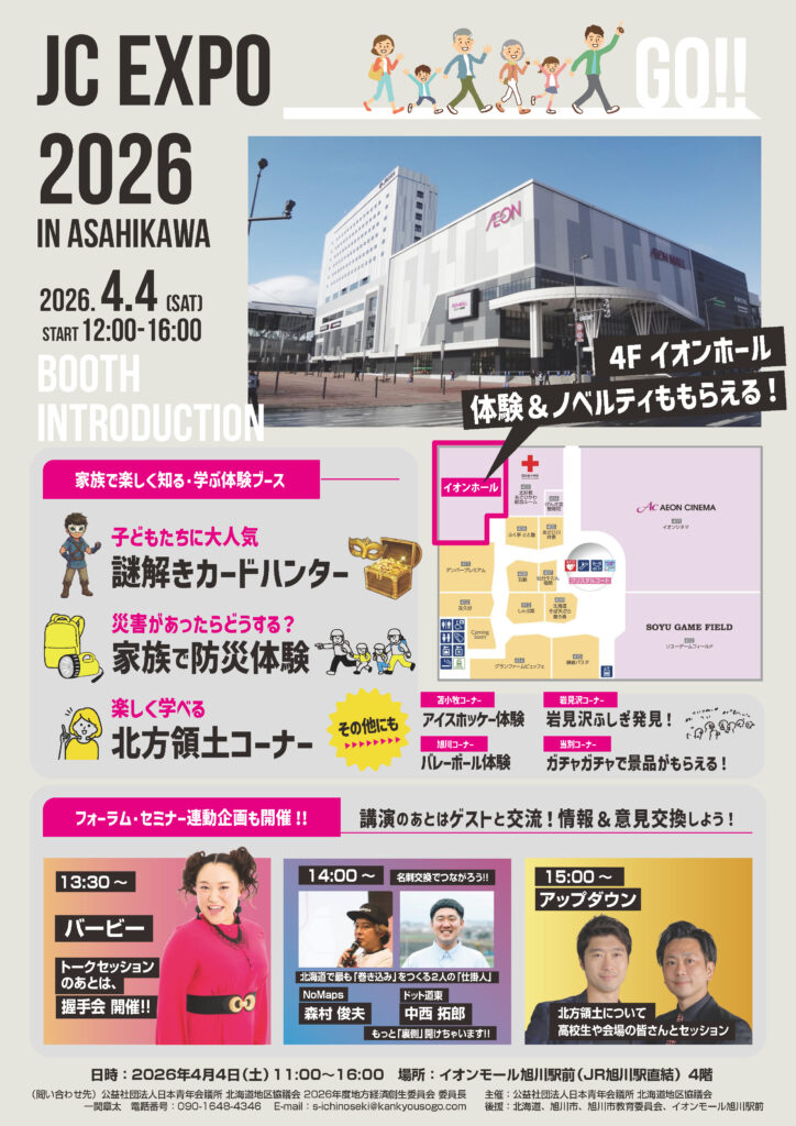 JC EXPOのブースは、4Fイオンホール旭川駅前で開催!家族で楽しみながら学べる体験ブースをご用意しています!