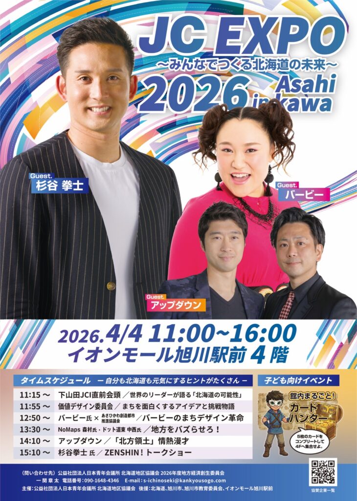 本日より4月4日(土曜日)開催のJC EXPO2026in旭川~みんなでつくる北海道の未来~の情報を投稿していきます!