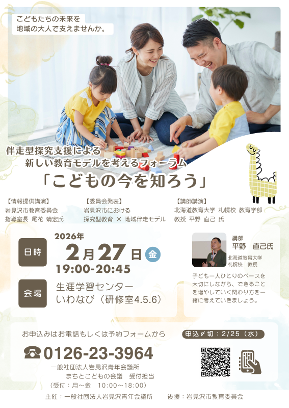 ★事業紹介:岩見沢市の子どもたちの現状を再認識するとともに、子どもたちの個別最適に合わせたケアの実現から、伴走型探究支援を組み合わせた新たな教育モデルの可能性を高め、子ども一人ひとりの挑戦を引き出し、地域の大人がその想いに寄り添うことのできる、安心感と挑戦意欲を育む環境の構築を目指します。